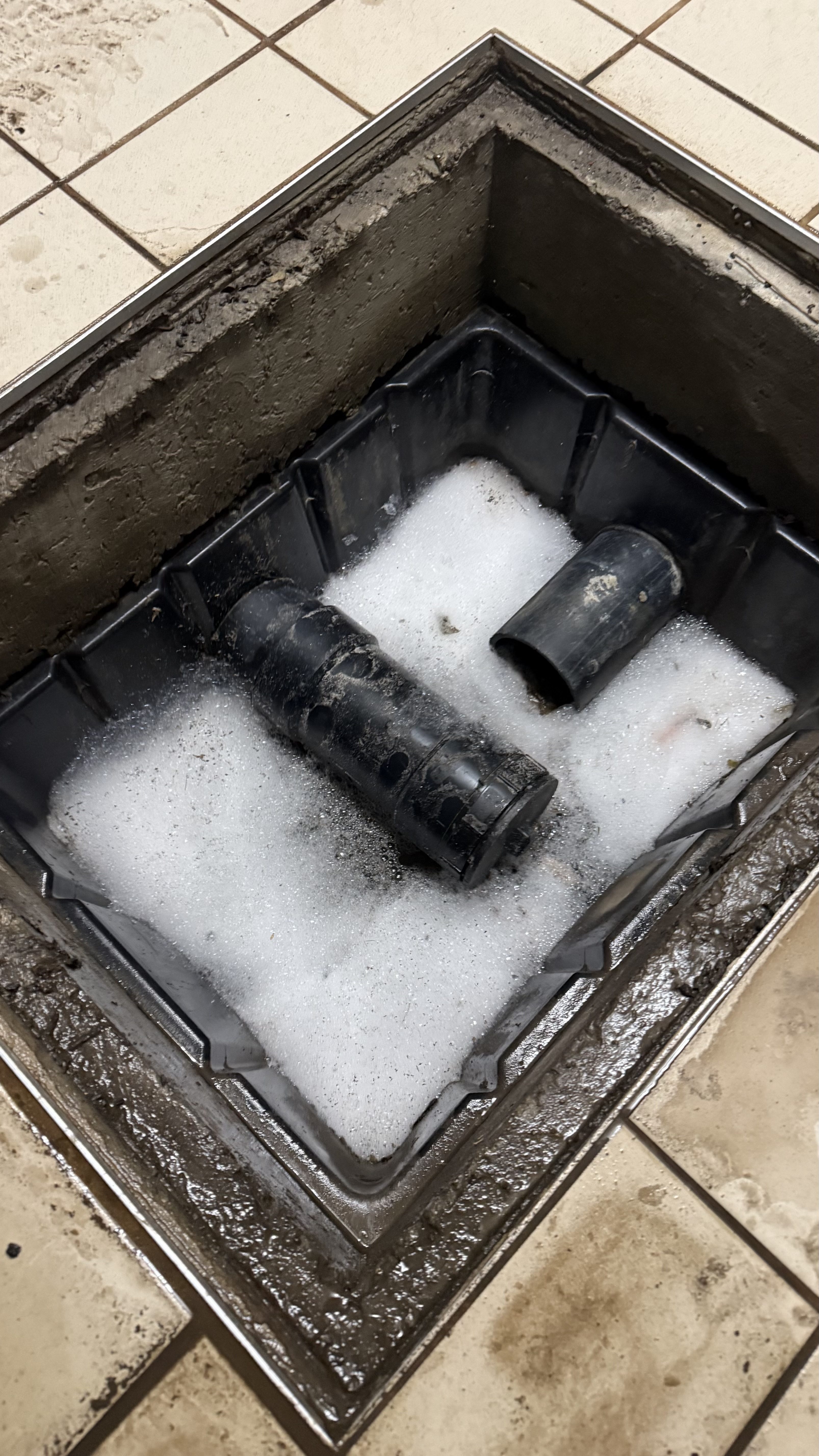 Pour un garage résidentiel, nous recommandons un nettoyage au moins une fois par an. Cependant, si vous utilisez fréquemment votre garage ou si vous constatez des écoulements lents, un nettoyage plus régulier peut être nécessaire.